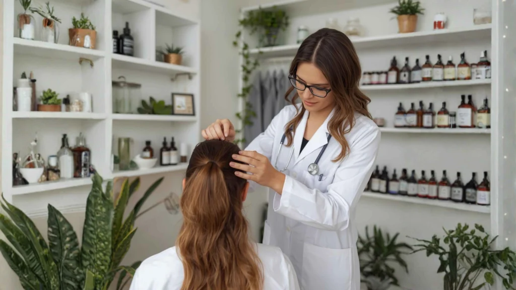 Each patient receives customized homeopathic remedies that work gently with the body to strengthen hair roots, restore hormonal balance, and promote natural hair growth.